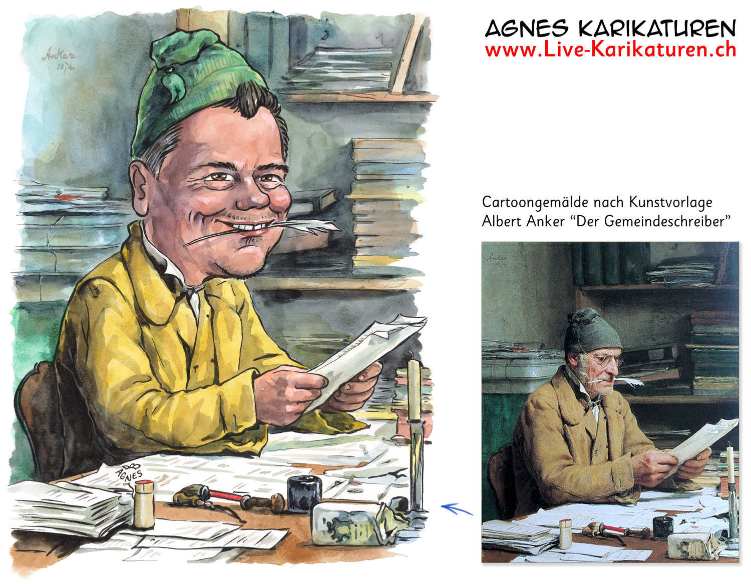 Das Foto oben zeigt ein Beispiel von einem Cartoonporträt ab Foto, wo die porträtierte Person im Stil eines klassischen Gemäldes gemalt wurde. Die Slideshow unten zeigt einige Werke meines Schaffens.